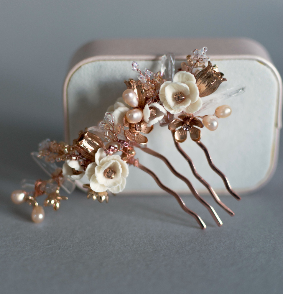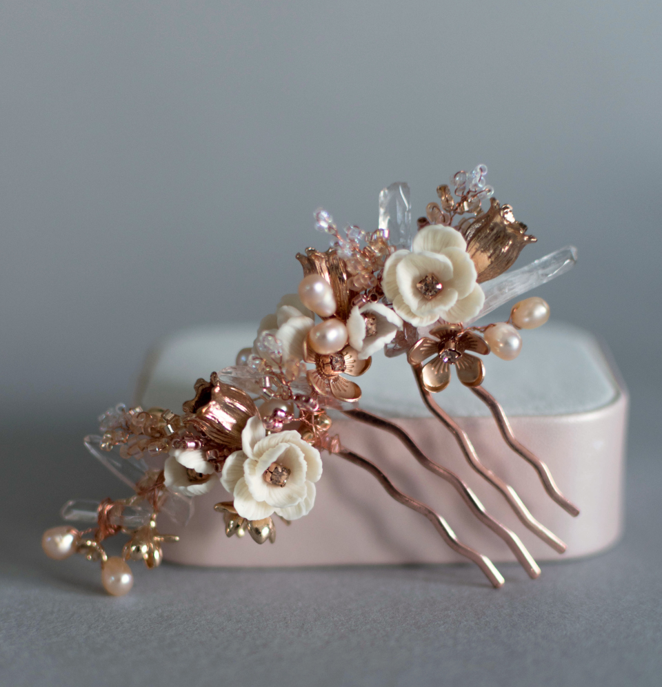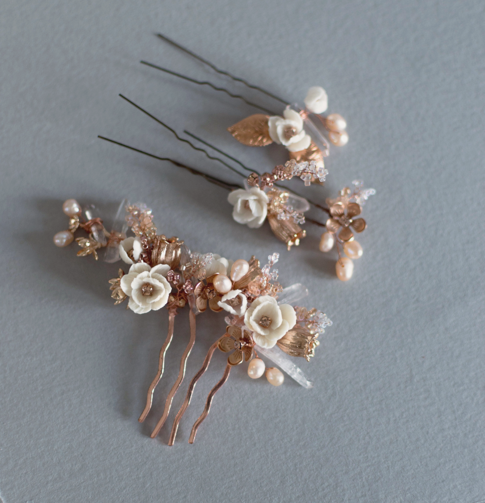 Includes 5 hair pins with miniature flowers with a sparkling centre.