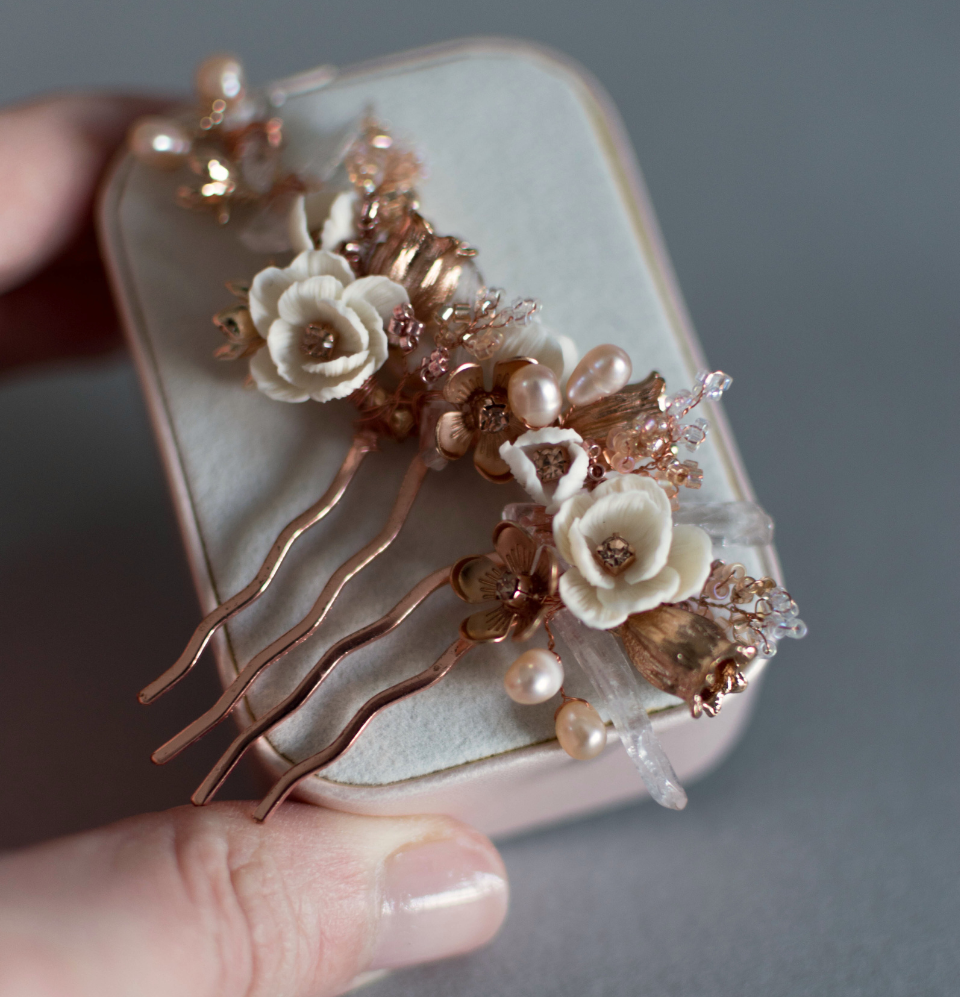 All flower elements are handmade from foam or polymer clay. Original design and unique technique by Nadya Mamaeva (DECOFLOWERS). In addition, we supplement our items with organza, natural silk, Japanese beads, Swarovski crystals, freshwater pearls, non-tarnish jewellery wire and many other high-quality materials. All rights reserved.