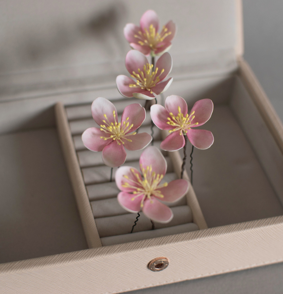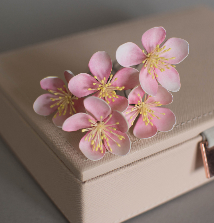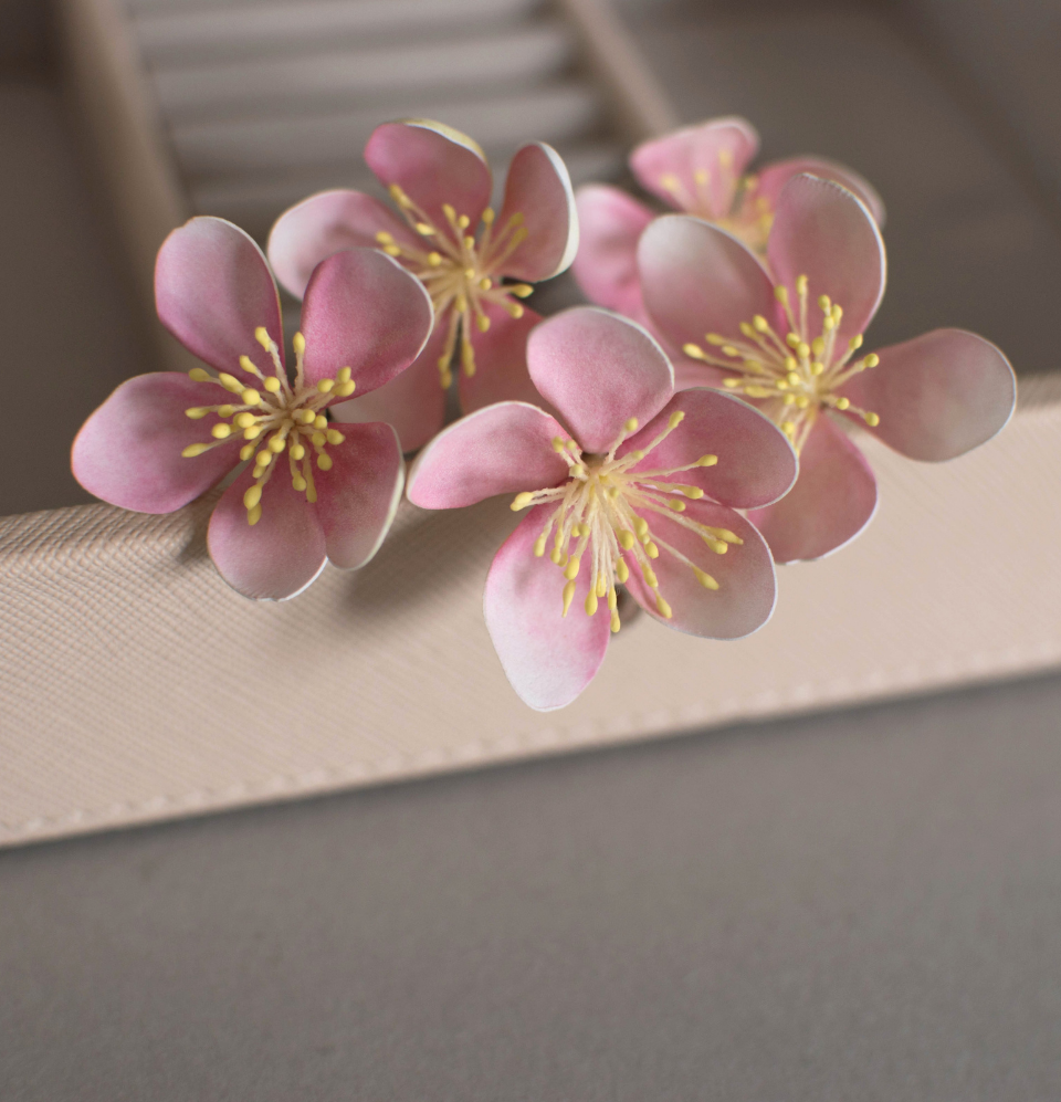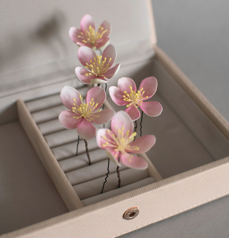 All flower elements are handmade from foam or polymer clay. Original design and unique technique by Nadya Mamaeva (DECOFLOWERS). In addition, we supplement our items with organza, natural silk, Japanese beads, Swarovski crystals, freshwater pearls, non-tarnish jewellery wire and many other high-quality materials. All rights reserved.