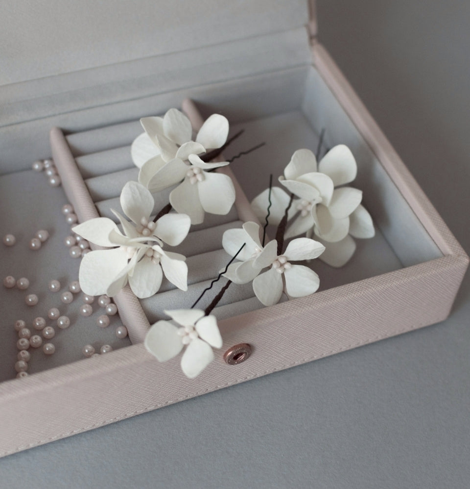 Ivory Hydrangea hair pins