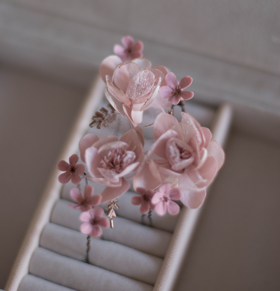 All flower elements are handmade from foam or polymer clay. Original design and unique technique by Nadya Mamaeva (DECOFLOWERS). In addition, we supplement our items with organza, natural silk, Japanese beads, Swarovski crystals, freshwater pearls, non-tarnish jewellery wire and many other high-quality materials. All rights reserved.