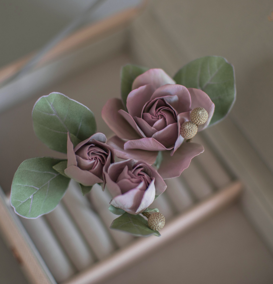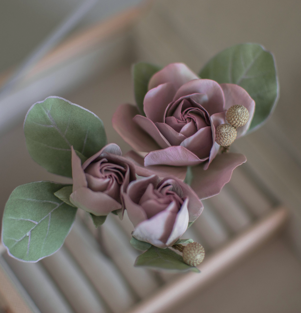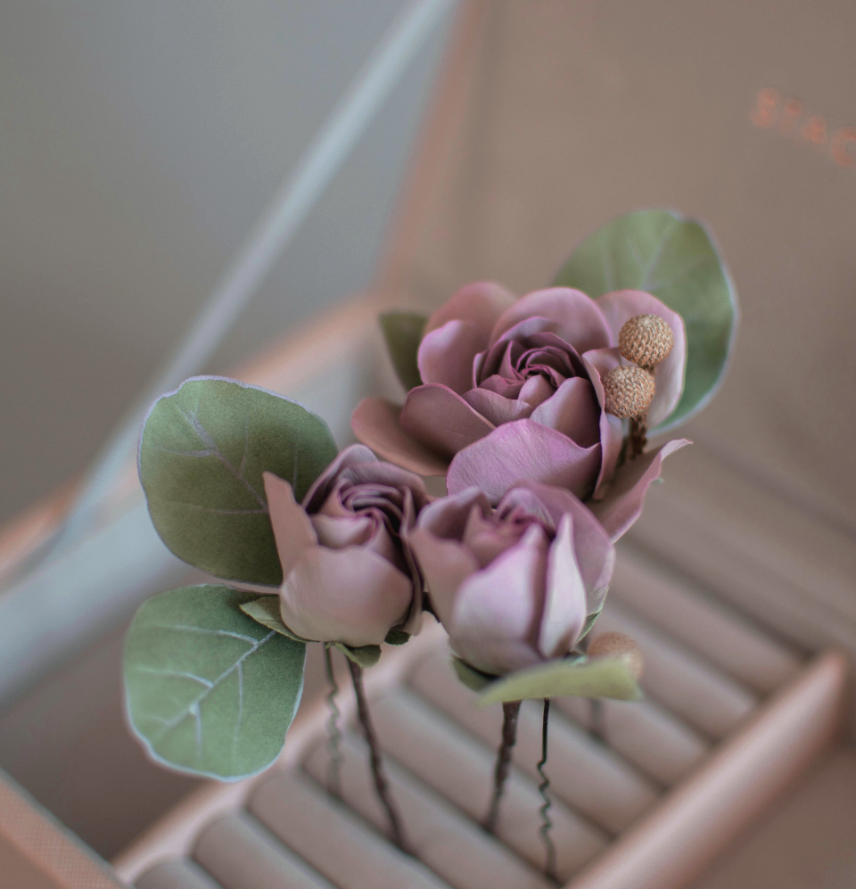 Pins supplemented with handmade eucalypt leaves and stabilized brunia berries flowers. This gorgeous set of Roses bridal Hair Pin is handmade.