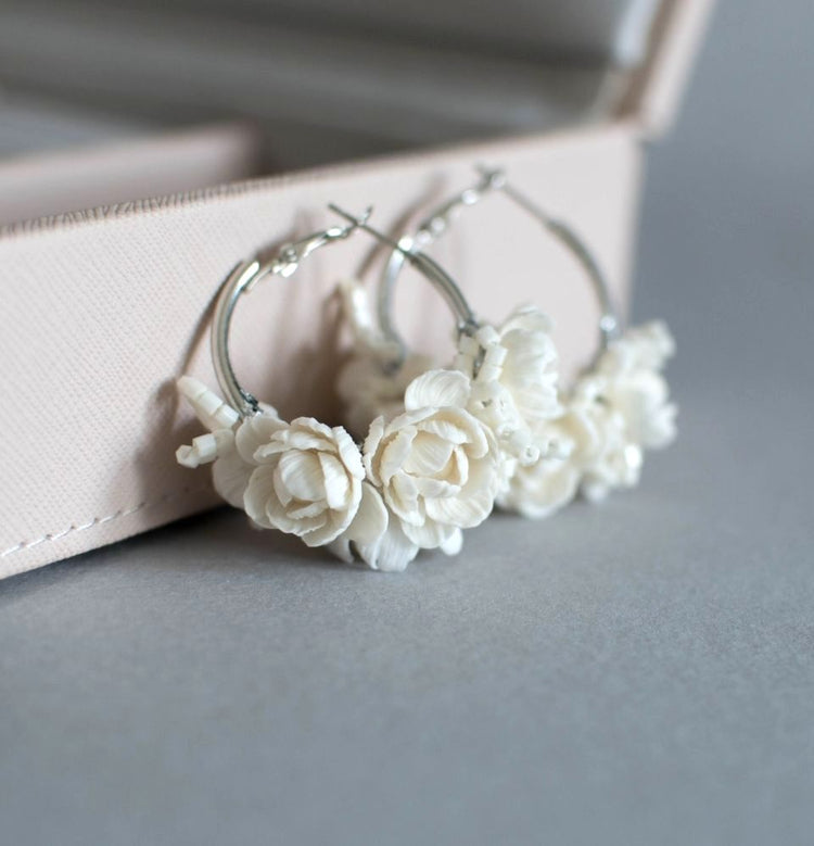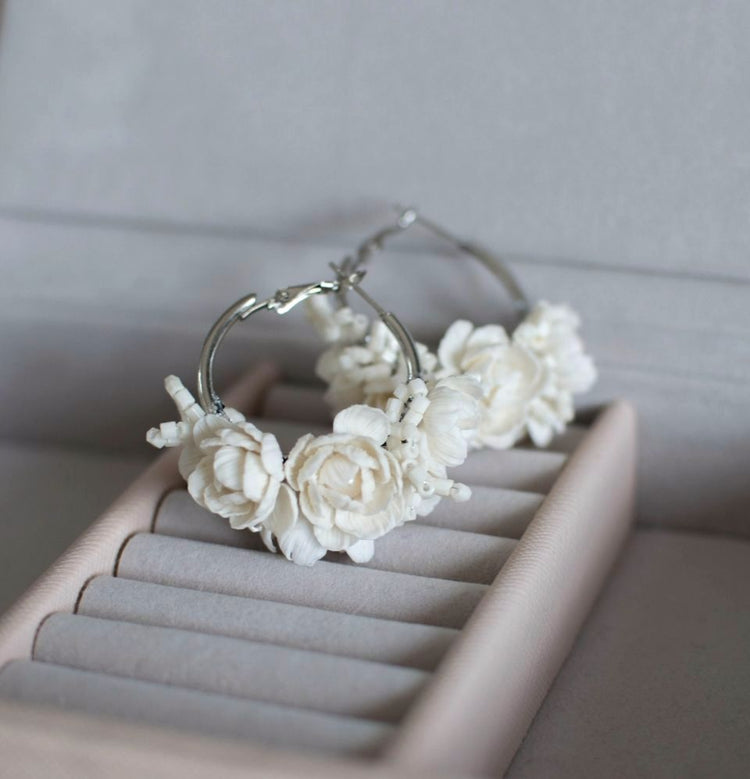 Elegant and romantic handmade earrings made from polymer clay.
