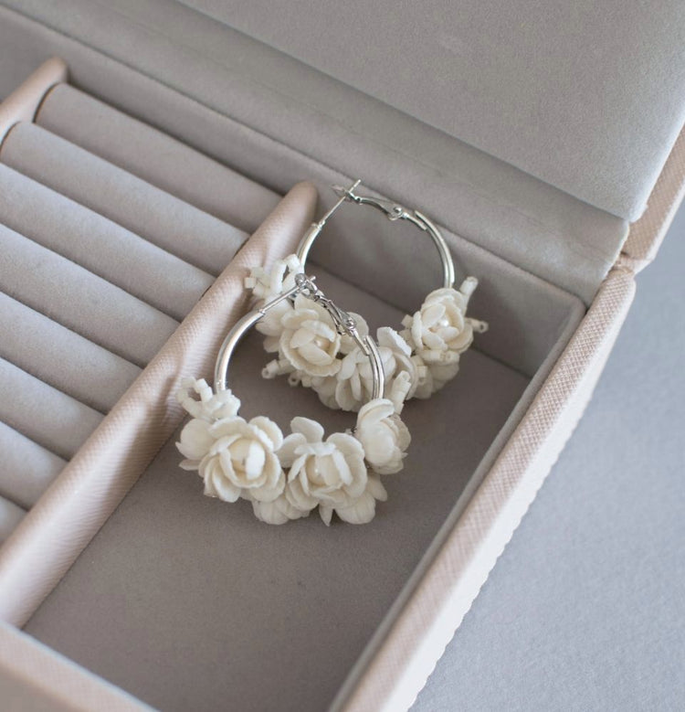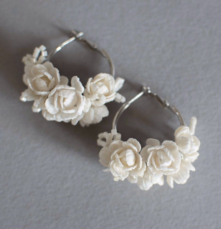 Flowers are attached on Silver colour Hoop Earrings 30mm.