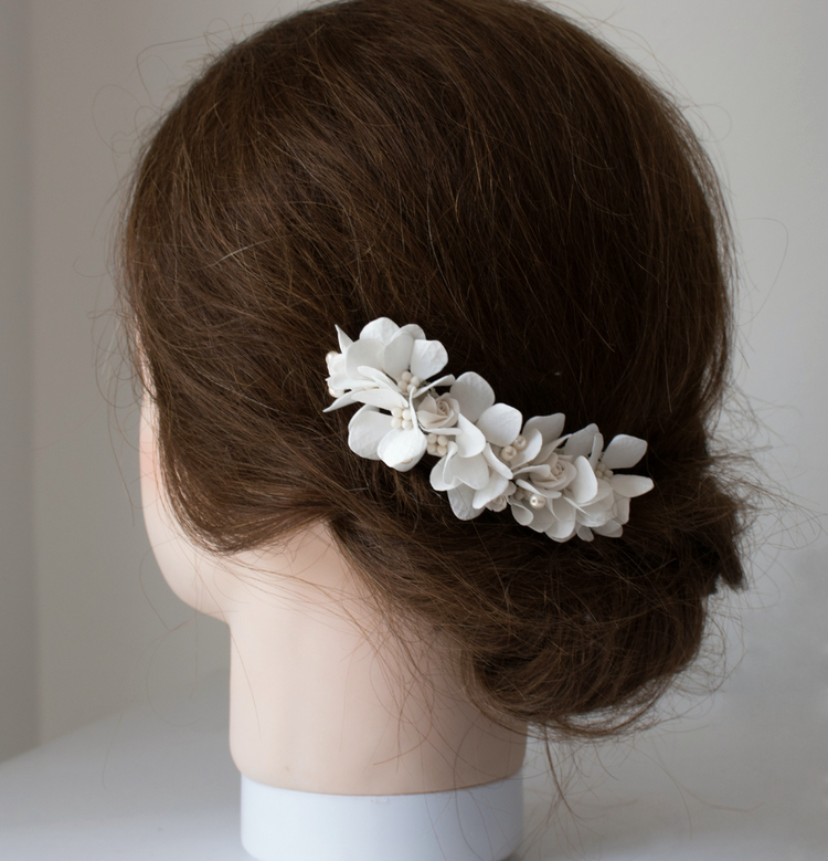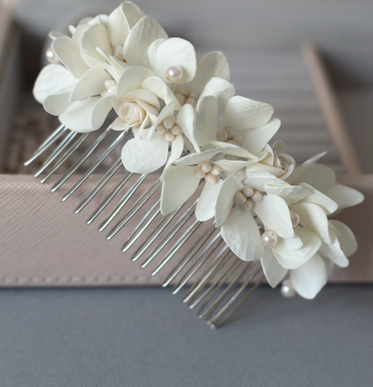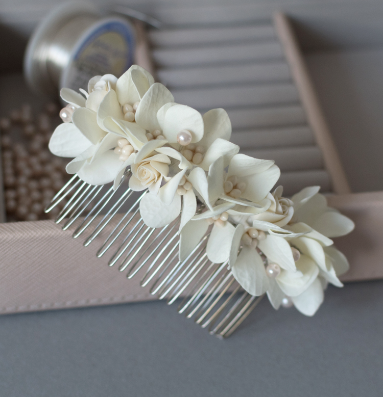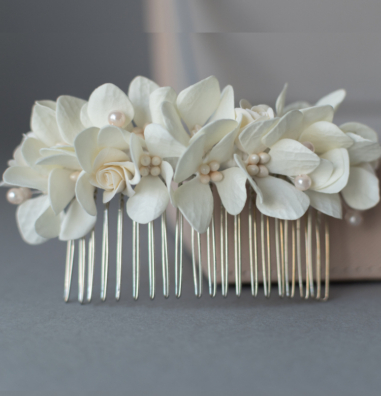 All flower elements are handmade from foam or polymer clay. Original design and unique technique by Nadya Mamaeva (DECOFLOWERS). In addition, we supplement our items with organza, natural silk, Japanese beads, Swarovski crystals, freshwater pearls, non-tarnish jewellery wire and many other high-quality materials. All rights reserved.