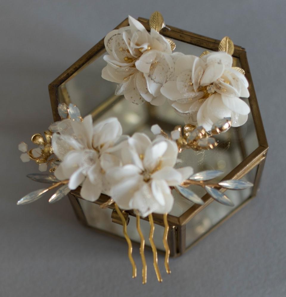 All flower elements are handmade from foam or polymer clay. Original design and unique technique by Nadya Mamaeva (DECOFLOWERS). In addition, we supplement our items with organza, natural silk, Japanese beads, Swarovski crystals, freshwater pearls, non-tarnish jewellery wire and many other high-quality materials. All rights reserved.