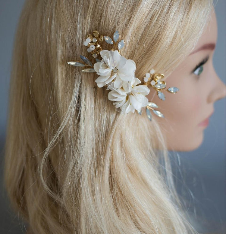 All flower elements are handmade from foam or polymer clay. Original design and unique technique by Nadya Mamaeva (DECOFLOWERS). In addition, we supplement our items with organza, natural silk, Japanese beads, Swarovski crystals, freshwater pearls, non-tarnish jewellery wire and many other high-quality materials. All rights reserved.